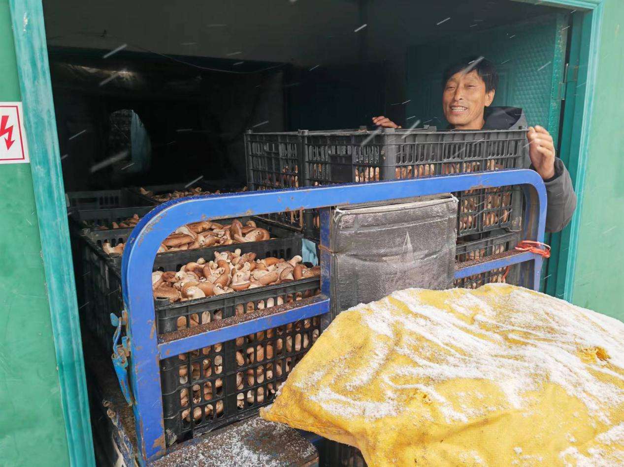 2月1日,记者冒雪赶到河南省三门峡市卢氏县沙河乡果角村。村里两个大型香菇产业基地种有330万棒香菇,出菇正好。